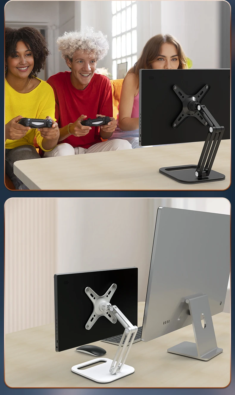 The portable monitor VESA stand helps to correct the “Text Neck”. More professional capacity monitor holder stands are a great addition to your office desk that maximizes productivity, reduces neck pain when lying prone or on your back relaxing.